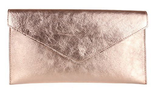 Gorgeous genuine leather envelope clutch bag with metallic design Comes with a matching wrist strap and a shoulder strap made of leather Fully lined inside perfect for caring it on the shoulder or like a clutch bag Plain design perfect for matching special outfits